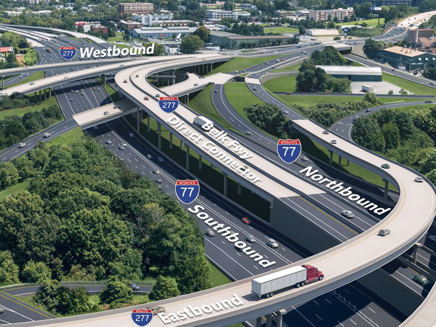 Interstate 77 is one of the most heavily traveled north-south corridors in the Southeast, providing direct access to Uptown Charlotte and serving as a key commuter and freight route across central and western North Carolina. Travel times along the 11-mile stretch can approach an hour during peak periods.